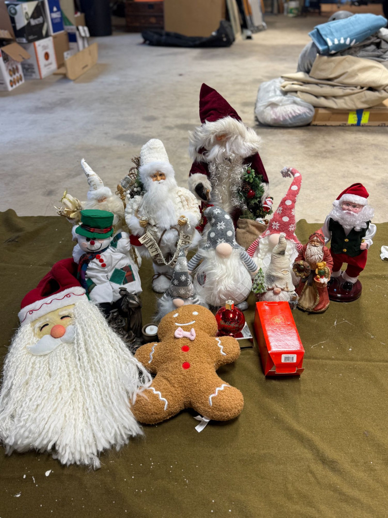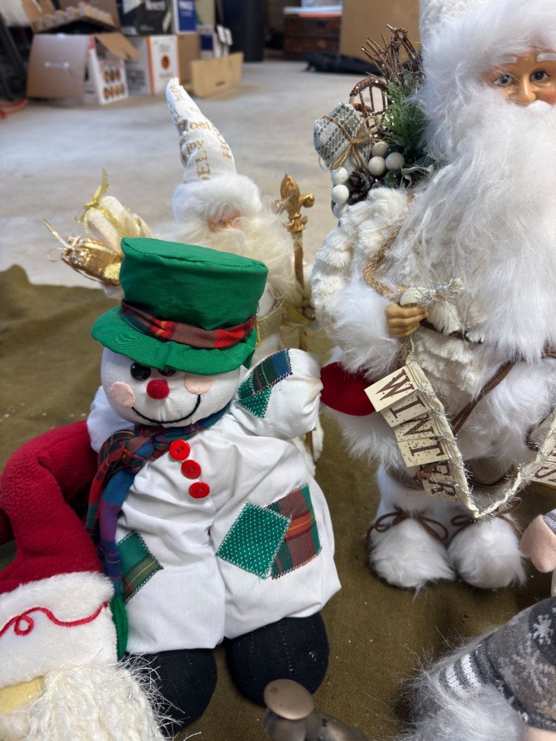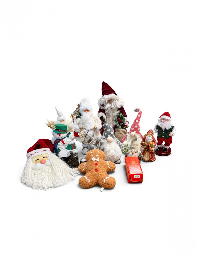 Charming mixed vintage Christmas décor lot featuring an assortment of Santa figures, Scandinavian-style gnomes, plush holiday characters, and festive accents. This curated bundle includes a variety of textures and styles—from soft plush Santas and whimsical gnomes to classic figurines and holiday ornaments. Perfect for holiday decorating, resale, or styling cozy seasonal displays, this lot offers a warm, nostalgic Christmas aesthetic with a mix of traditional and modern vintage-inspired pieces. Features: Condition: Approx Measurements: Historical Note & Estimated Value: Estimated value: $40–$120 for the lot