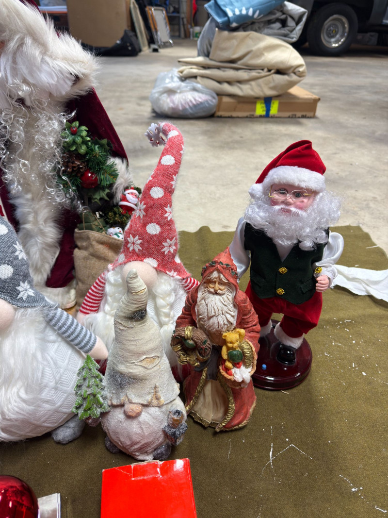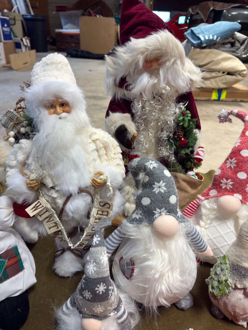 Vintage Christmas décor, especially Santa figures and Scandinavian gnomes (tomte/nisse), became widely popular in mid-to-late 20th century holiday styling and remain highly collectible today for their nostalgic charm. Mixed lots like this are especially desirable for decorators and resellers.