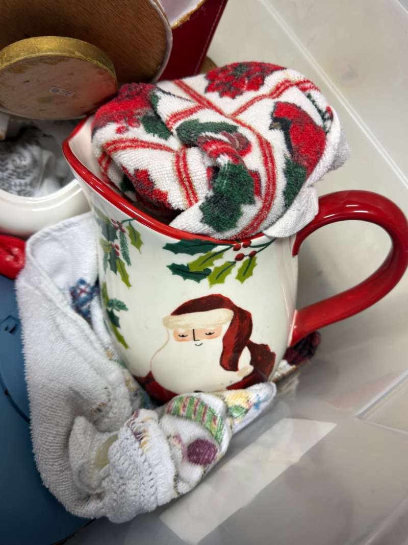 Lot # 83 - Vintage Christmas Decor Lot Holiday Linens Mug