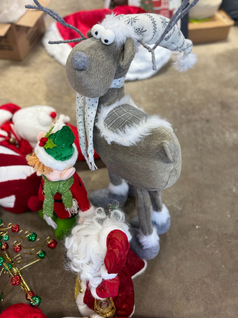 Largest items (pillows/reindeer): approx 12”–24” range