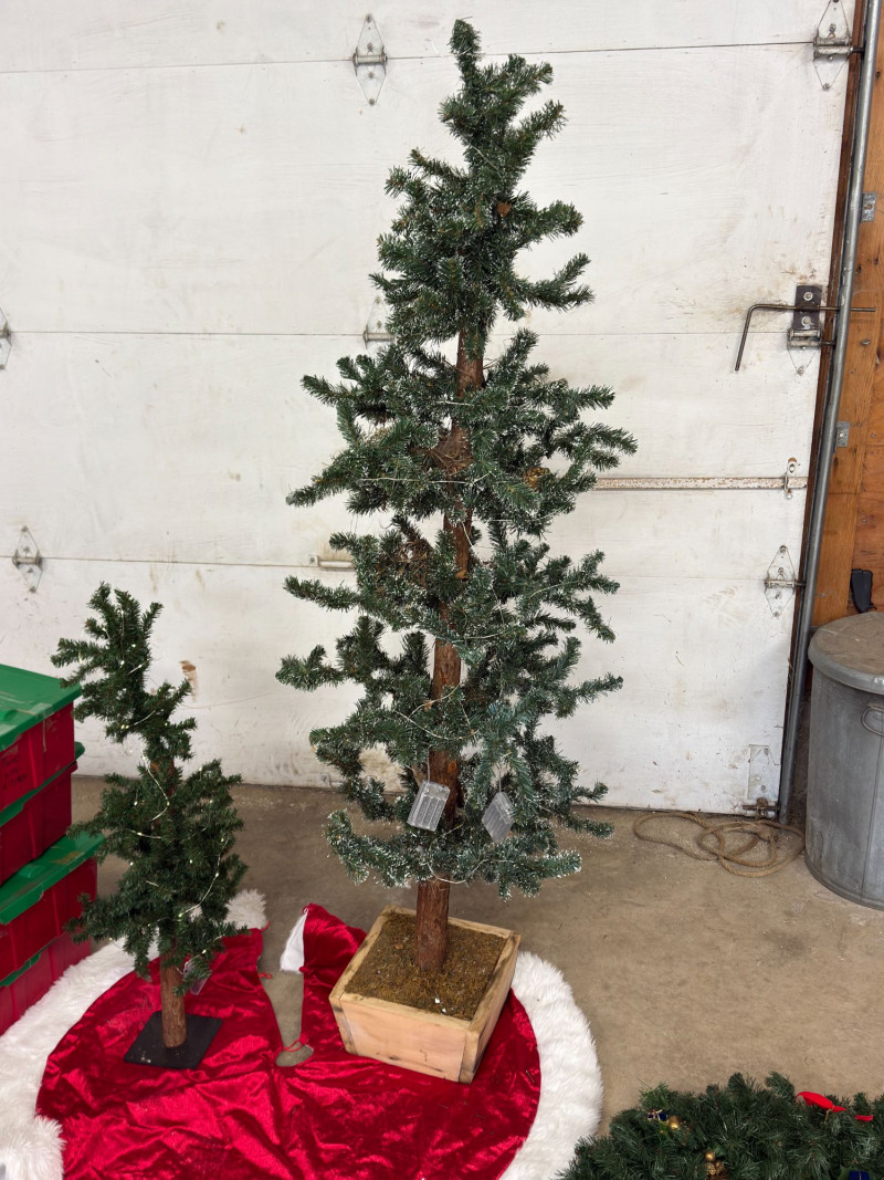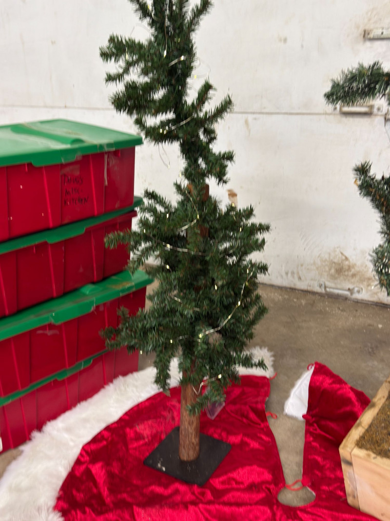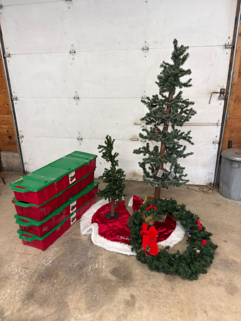 Complete Christmas tree and décor bundle featuring multiple artificial trees and coordinating holiday accessories—perfect for an easy, ready-to-go setup. This set includes: Great for home decorating, storage organization, or staging multiple holiday spaces. Condition: Approx Dimensions: Historical Note & Estimated Value: Estimated value: $80–$150