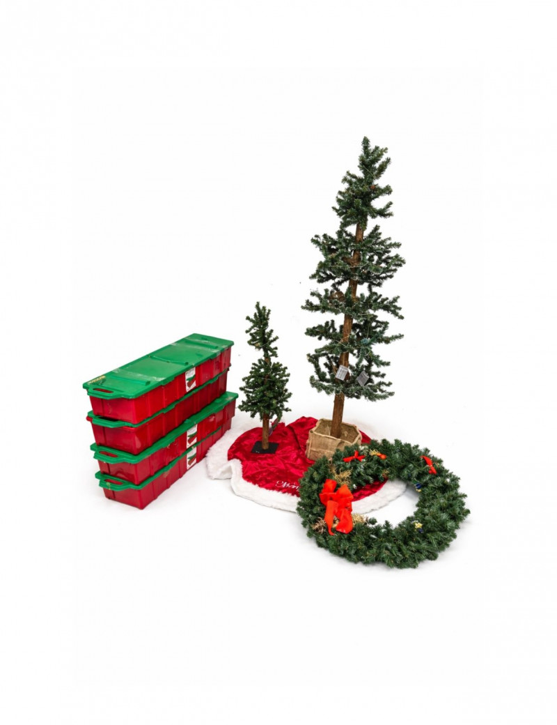 Lot # 103 - Artificial Christmas Tree Set w/ Storage Bins, Wreath & Tree Skirt
