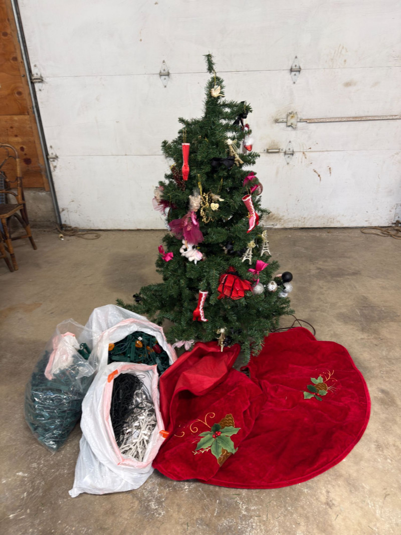 Lot # 63 - Pre-Lit Artificial Tree w/ Vintage Ornaments & Holiday Lights Bundle