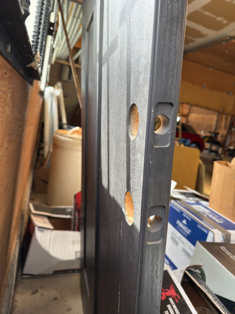 Brand not marked. Comparable in style and quality to doors by Masonite, Jeld-Wen, or Therma-Tru (wood series).
