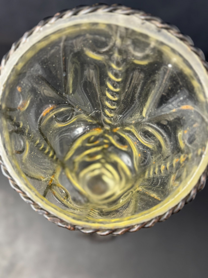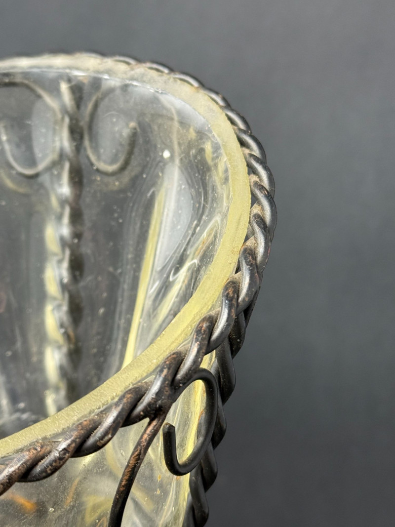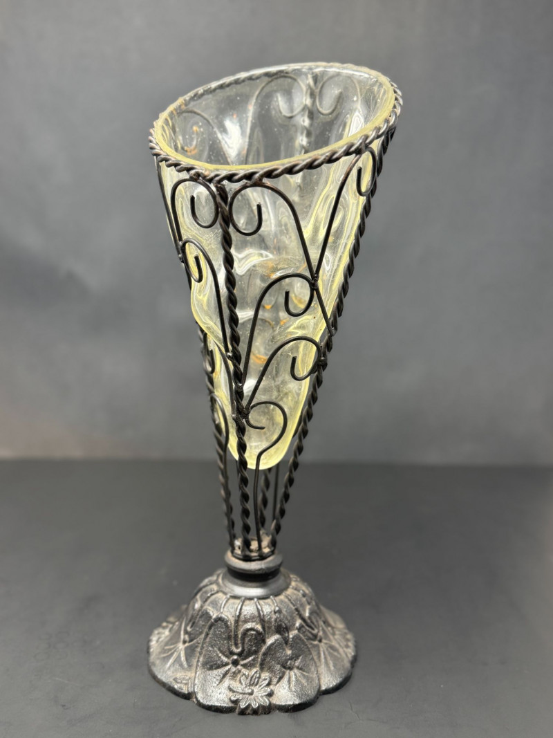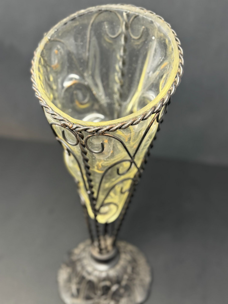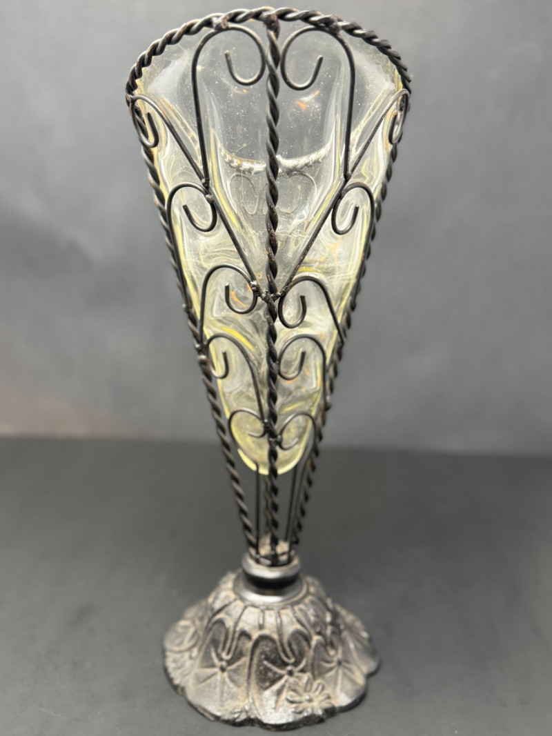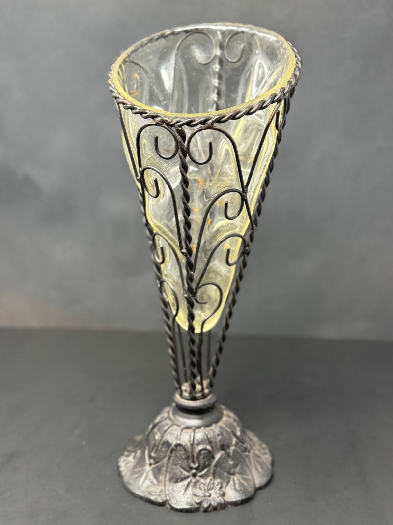 Lot # 35 - Vintage Caged Glass Flower Vase with Cast Iron Vase