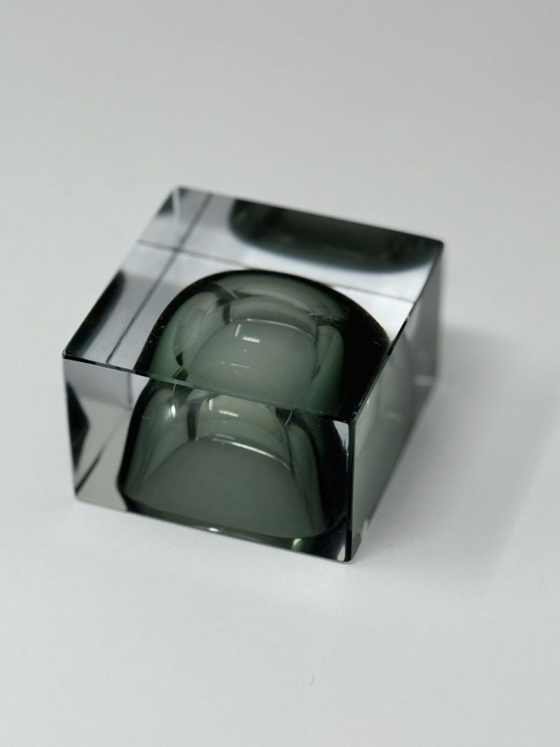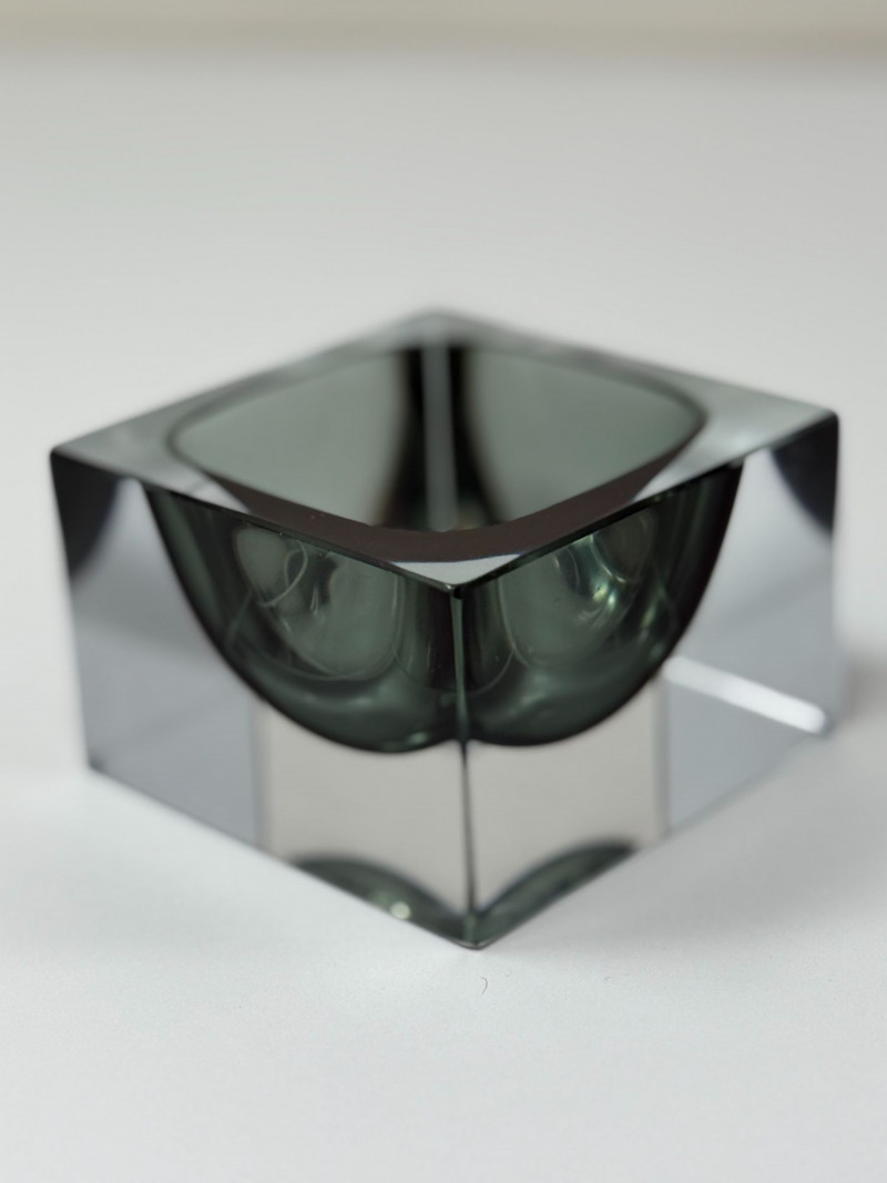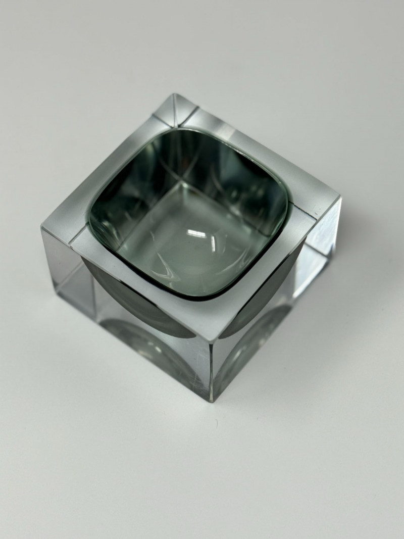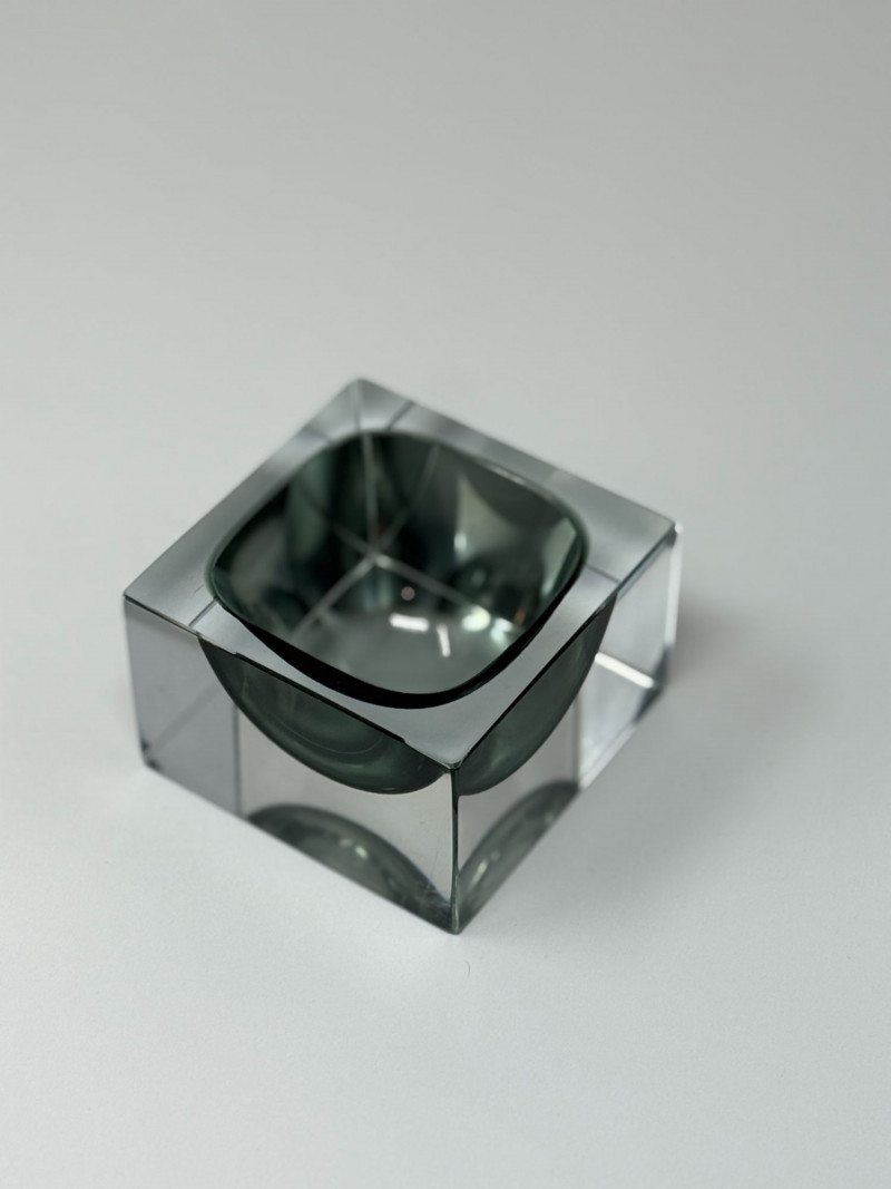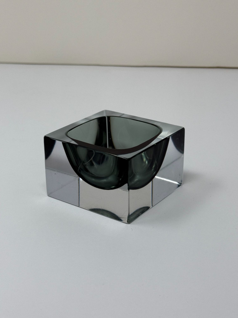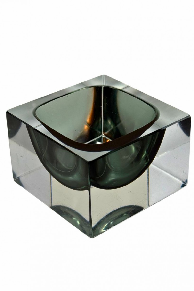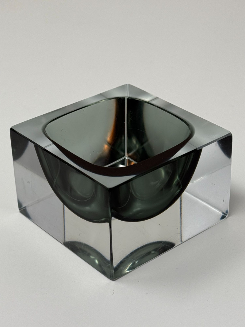 Murano glassworks are renowned for their innovation in modern glass design throughout the mid-20th century. Solid glass sculptural forms like this cube catchall reflect the era’s emphasis on clean lines, weight, and functional artistry.