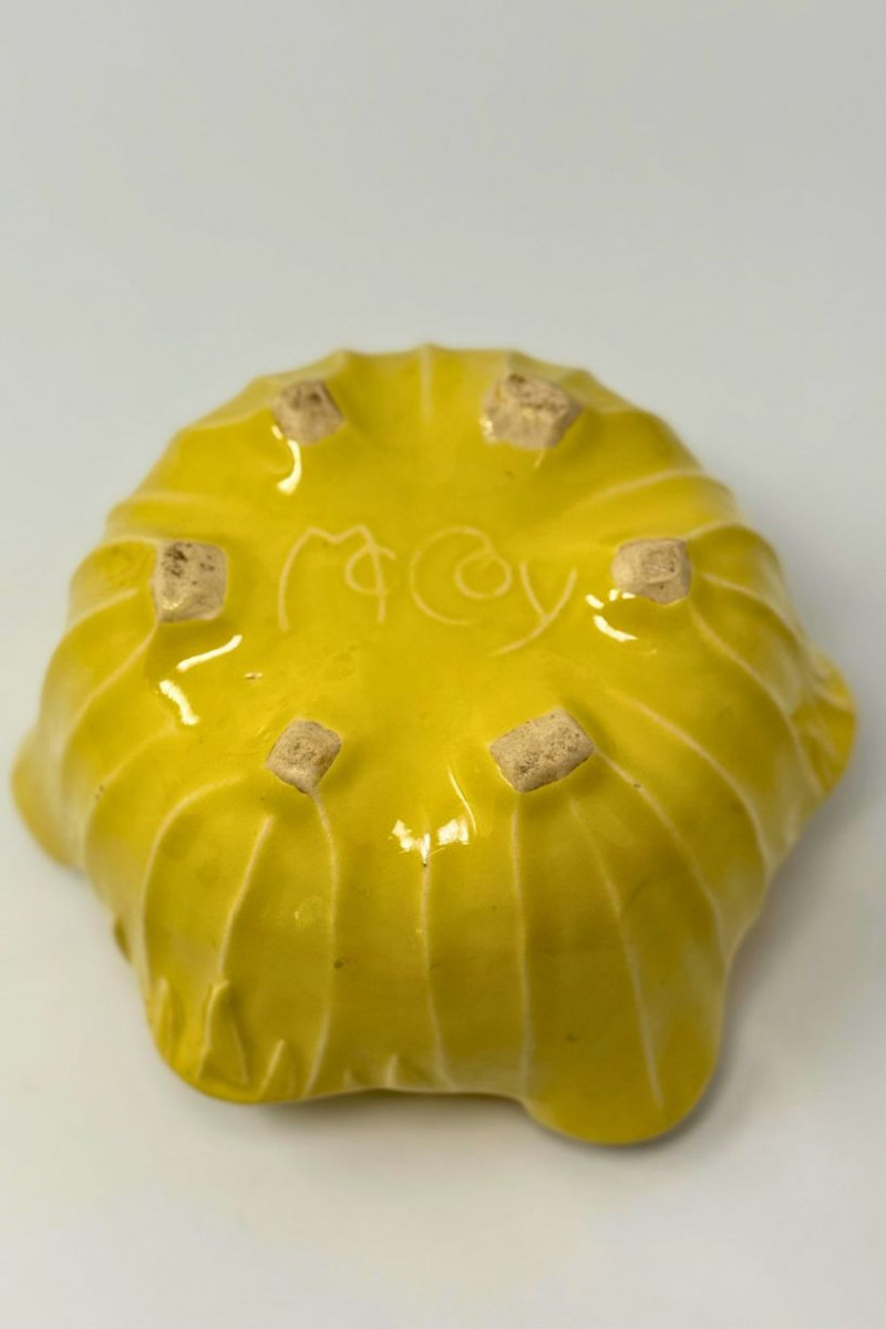 Comparable vintage McCoy yellow embossed centerpiece bowls typically sell in the $120–200 range, depending on condition, glaze quality, and form.