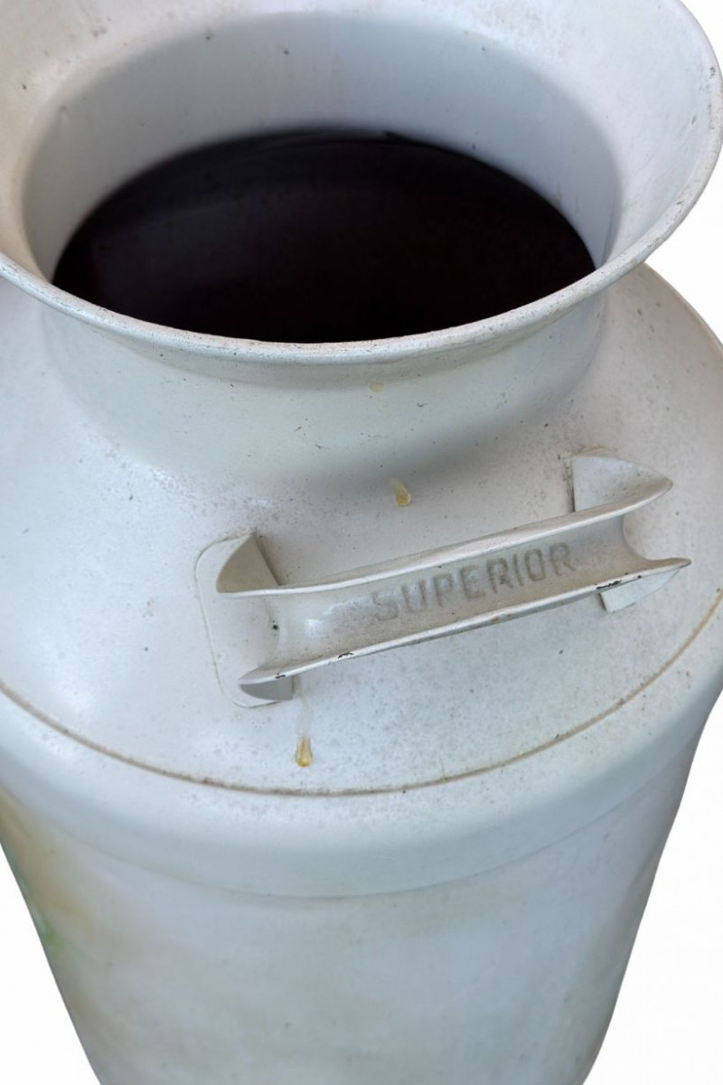 Milk cans like these were essential tools in early 20th-century dairy production, used to transport milk from farms to creameries. Decorative enamel examples were sometimes repurposed for household or decorative use, while galvanized cans were built strictly for durability. Today, both forms are widely collected for their sculptural shape and authentic rural character.
