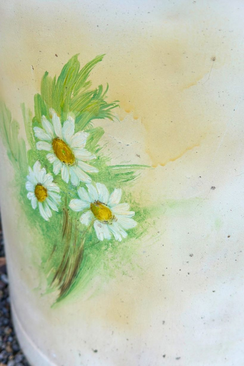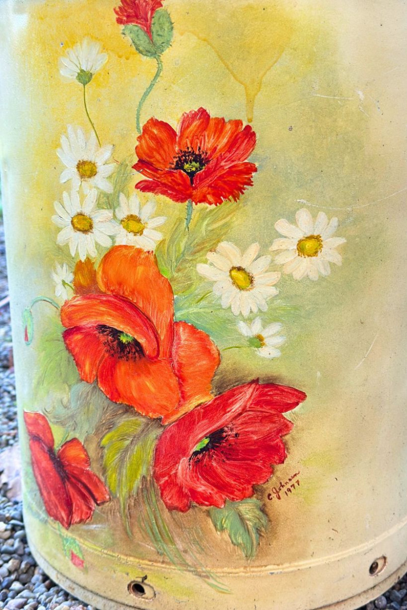 Lot # 25 - Vintage Milk Can Pair — Hand-Painted Floral Enamel & Galvanized Steel