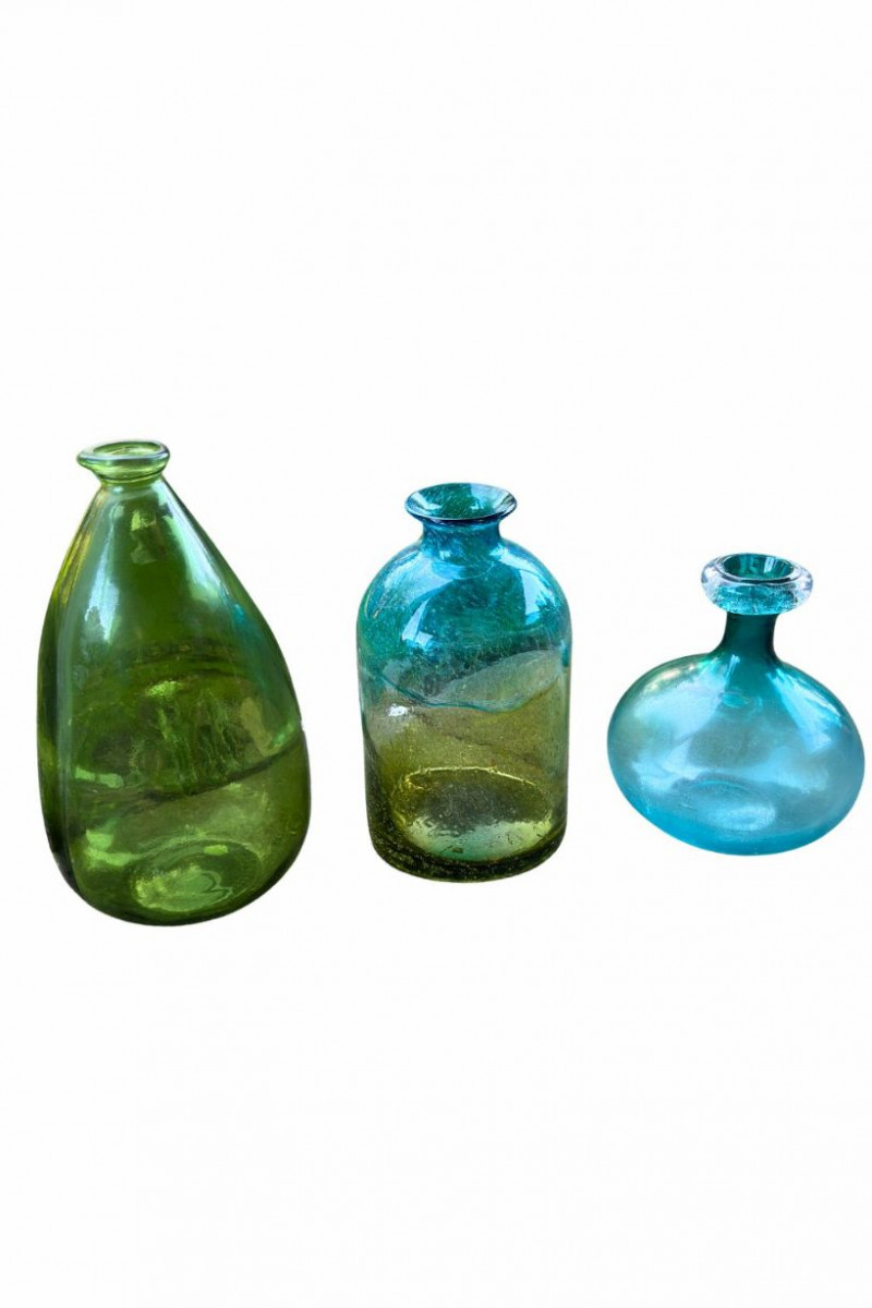 Color: Olive green, aqua blue, and turquoise tonesApproximate Measurements (Range Across All Three Bottles):