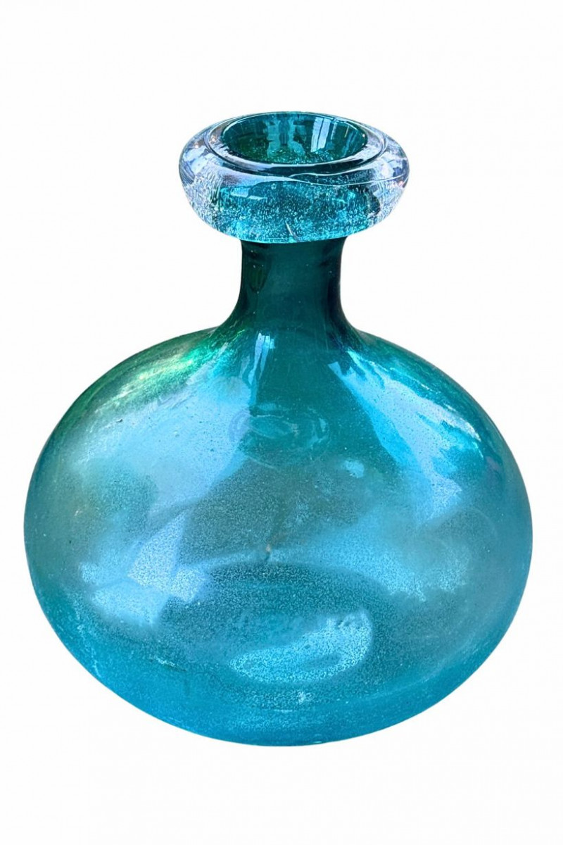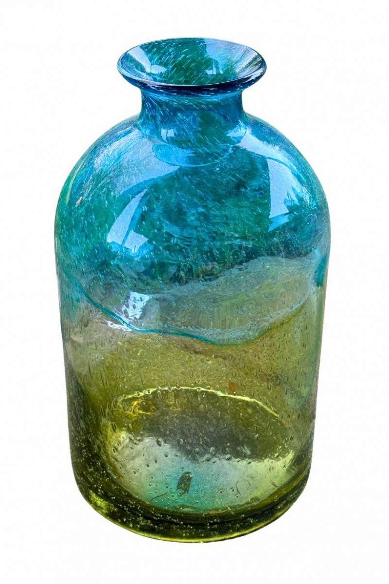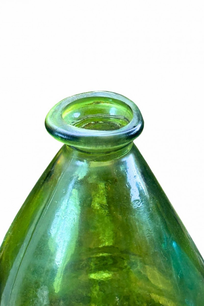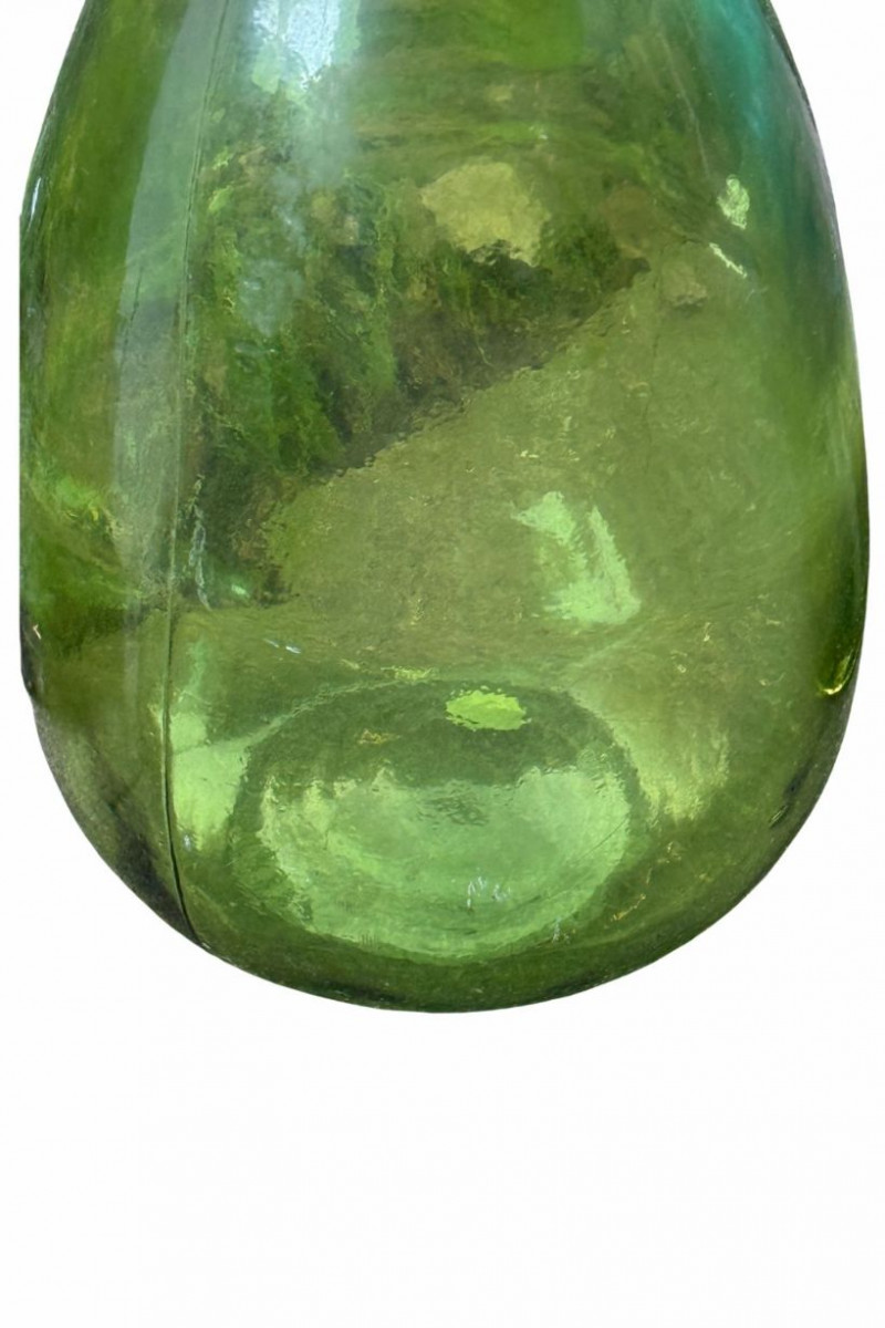 This curated lot features three vintage hand-blown glass bottles, each with distinct silhouettes and rich coloration ranging from olive green to aqua and turquoise blue. Together, the group creates a visually balanced and cohesive display that highlights the organic beauty of early glassmaking techniques. Each bottle exhibits subtle variations in color density, form, and surface texture, including visible air bubbles and gentle waviness—hallmarks of hand-blown production. The differing profiles and tones make this trio especially well-suited for shelf styling, floor display, or as a collected grouping in a vintage or modern interior. Type: Decorative glass bottles / vessels (set of 3) Height: approx. 8–12" Measurements are approximate and provided for reference. Individual bottle sizes vary slightly within this range. Good vintage condition overall. All three bottles show age-appropriate wear, including surface scuffing, air bubbles, and minor manufacturing irregularities consistent with hand-blown glass. No cracks observed. Any waviness or internal bubbles are inherent to the glassmaking process and contribute to the character of the pieces. Please review photos closely for condition details. Hand-blown glass bottles like these were commonly produced throughout Europe for utilitarian storage purposes, including wine, spirits, and liquids. Their color variation, uneven thickness, and organic forms reflect traditional glassblowing methods used prior to widespread industrial production. Today, these bottles are highly sought after for decorative use due to their sculptural quality and authentic material presence. Comparable vintage hand-blown glass bottles typically sell individually in the $75–175 range per piece, depending on size, color saturation, and condition. As a coordinated trio, this lot represents a strong decorative grouping with an estimated collective value in the $225–400 range.Vintage Hand-Blown Glass Bottle Trio — Blue & Green Tones, European Style