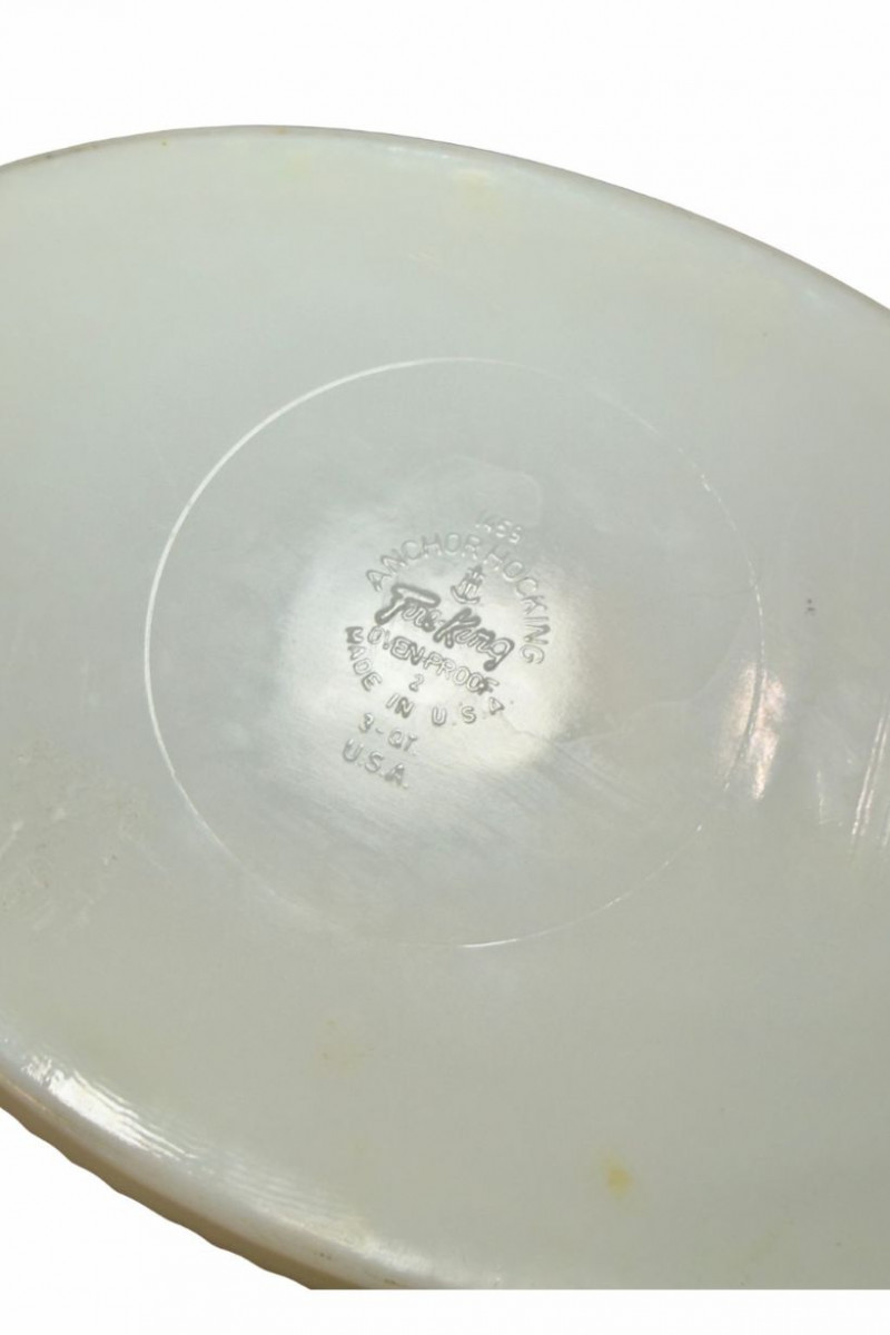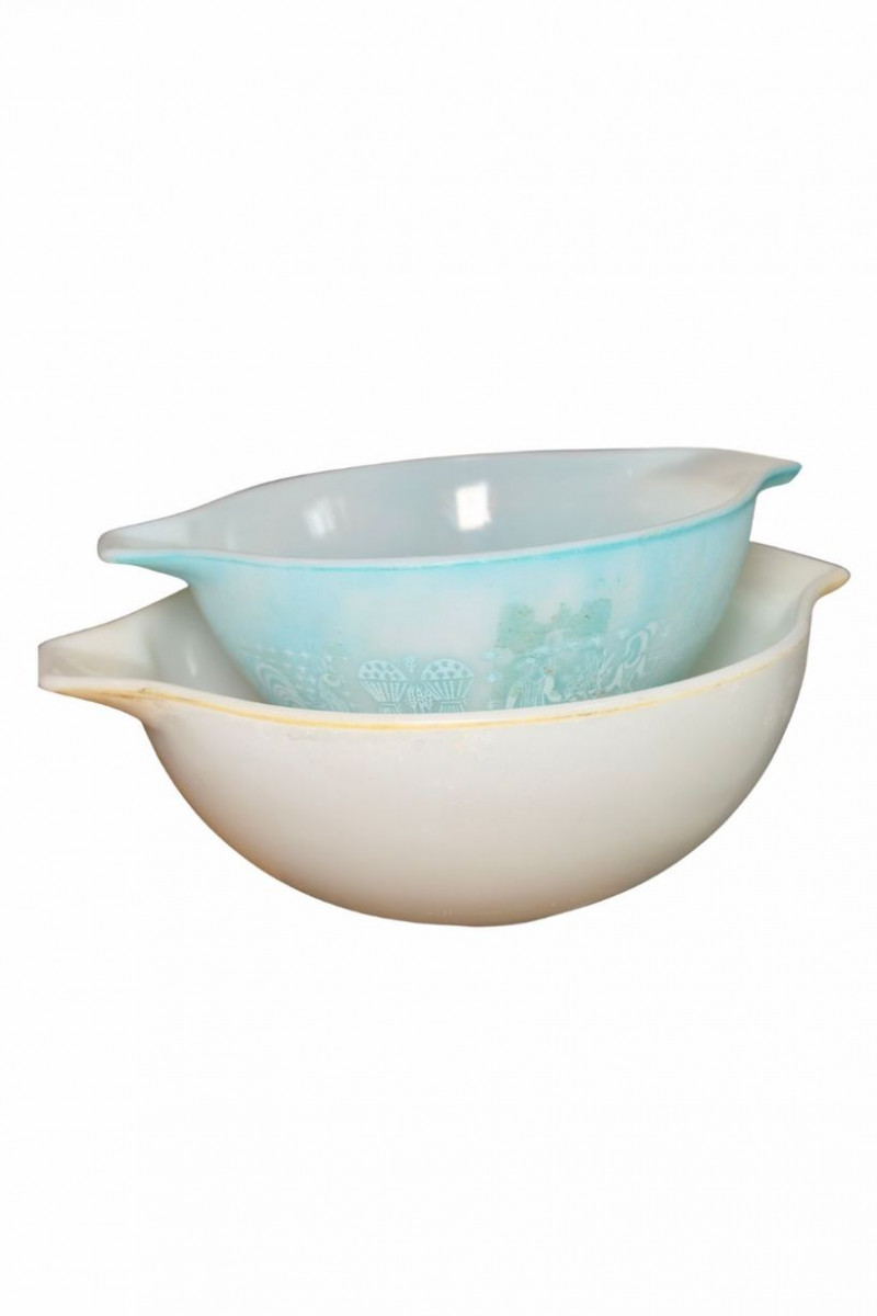 Pyrex and Fire-King were two of the most influential American glass manufacturers of the 20th century, producing durable, heat-resistant kitchenware that became household standards. Their milk glass pieces remain highly collectible for their longevity, clean design, and association with mid-century domestic life.