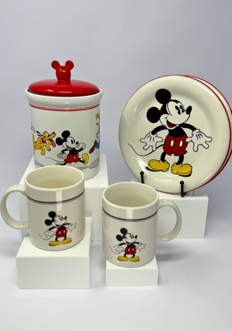 Gibson was a major producer of licensed Disney ceramic tableware during the late 20th century, creating collectible yet functional pieces that brought iconic characters into everyday home use. Mickey Mouse sets from this period are especially popular among Disney collectors and remain highly recognizable and desirable.