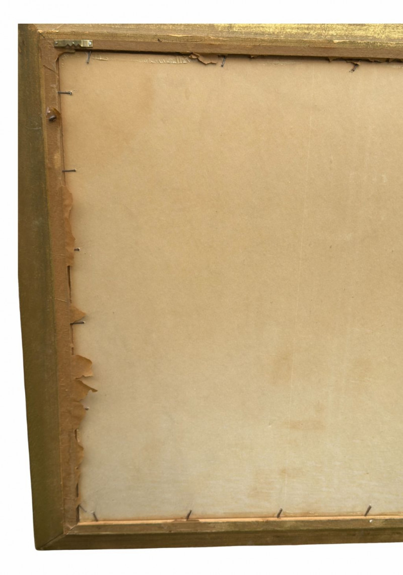 Good vintage condition overall. The painting surface shows age-appropriate wear and subtle craquelure consistent with older works. No major losses observed. Frame shows surface wear, minor scuffs, and patina consistent with age. Back paper cover ripped off. Please review all photos carefully for full condition details.